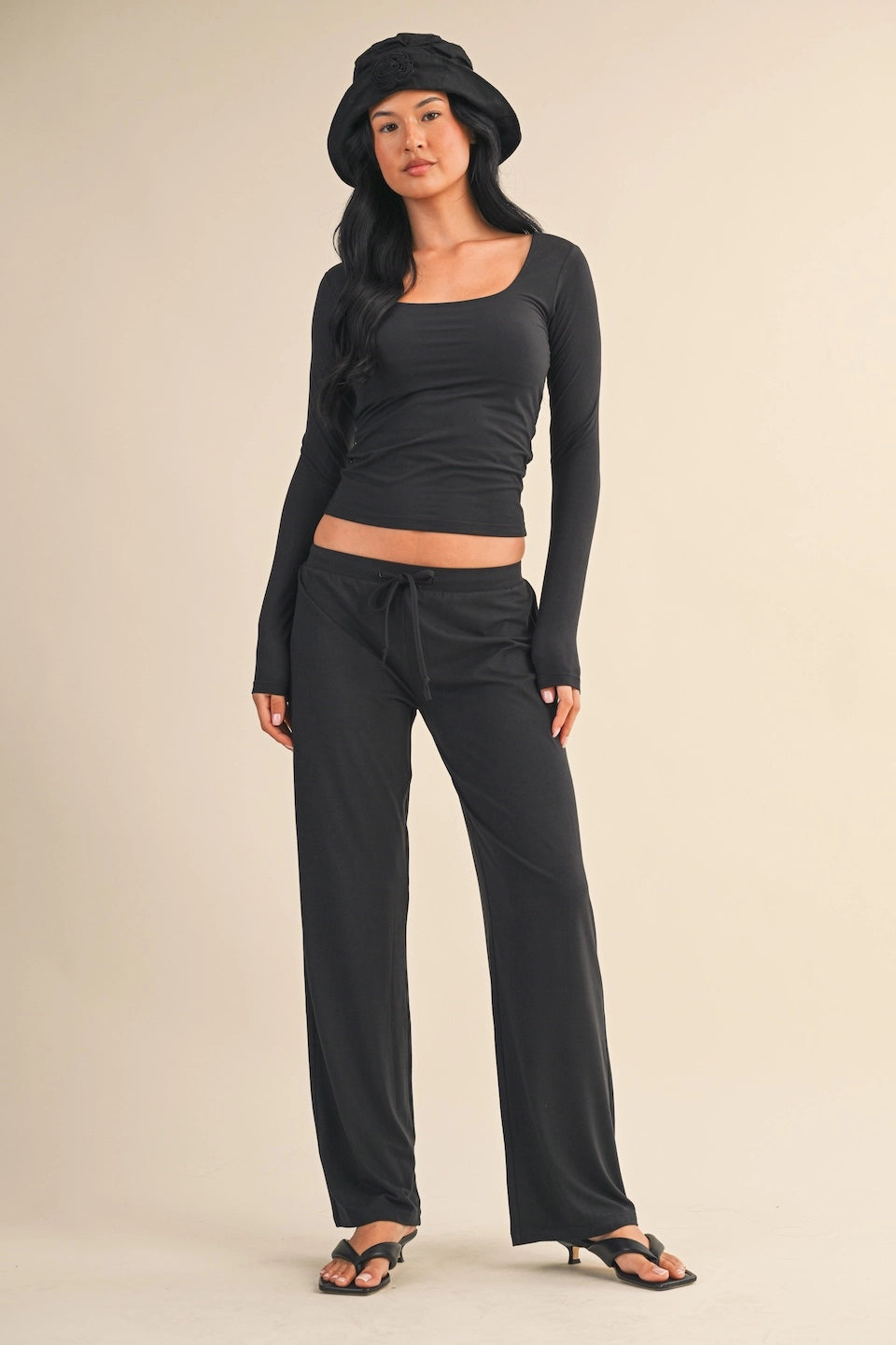 Soft Knit Jersey Square Neck Long Sleeve Top