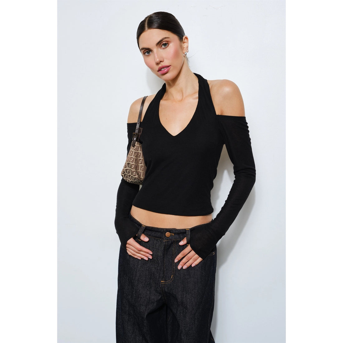 Sequined Halter Tank Top Plunge Neck Openback Top